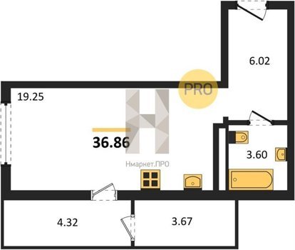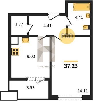 Площадь от 37.23 м2