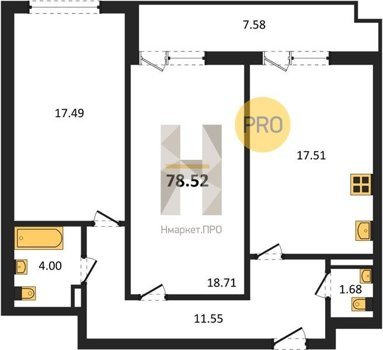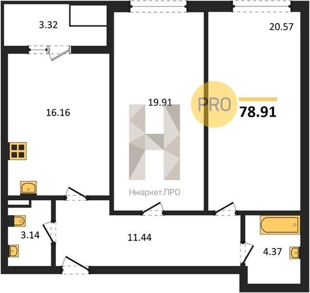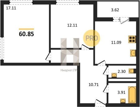 Площадь от 60.85 м2