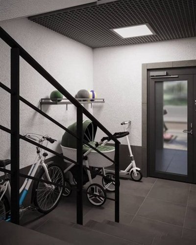 Кладовые на цокольном этаже и велопарковки добавляют практичности, освобождая