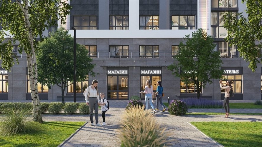 на первых этажах комплекса есть всё для вашей комфортной жизни: магазины, кафе, сервисы офисные пространства и рестораны