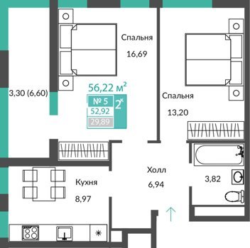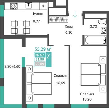IV квартал 2027 1, 2, 3 комнаты от 31.3 до 55.1 м2 от 6,6 до 8,9 млн. руб