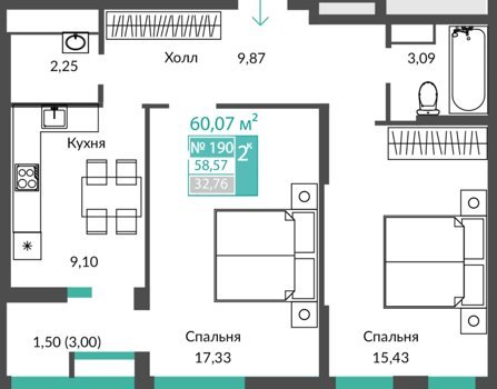 III квартал 2027 1, 2, 3 комнаты от 40.52 до 88.94 м2 от 8,5 до 17,0 млн. руб