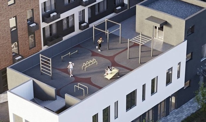 Детские площадки с игровым оборудованием, площадка для занятий спортом, зеленые зоны для отдыха, свободная wi-fi система для вашего удобства. Площадь детских площадок составляет 324,1м², взрослых - 324,7м²