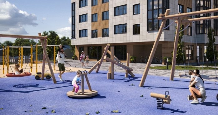 Яркая детская игровая зона и современная спортивная площадка станут центром семейных радостей