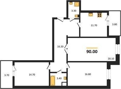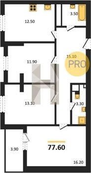 Площадь от 77.6 м2